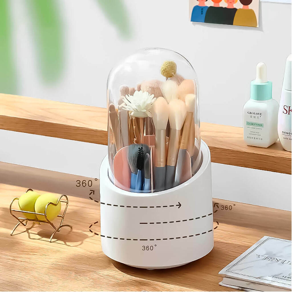 Ele guarda batons, pincéis, paletas, esmaltes e aquele gloss perdido com a delicadeza que seus itens de beleza merecem. A tampa acrílica protege contra poeira e respingos, enquanto as divisórias removíveis te dão liberdade pra organizar do seu jeito.